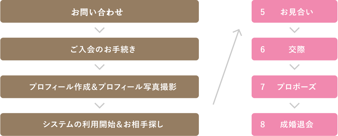 お相手の相談所とも協力し、結婚退会に向けてバックアップいたします。